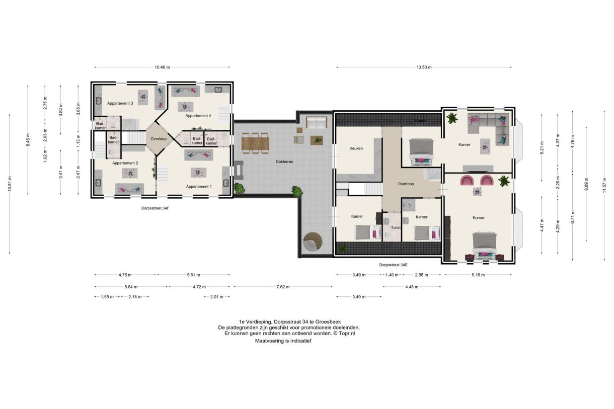 * Op de plattegronden zijn zowel appartement 34E als appartement 34F weergegeven;