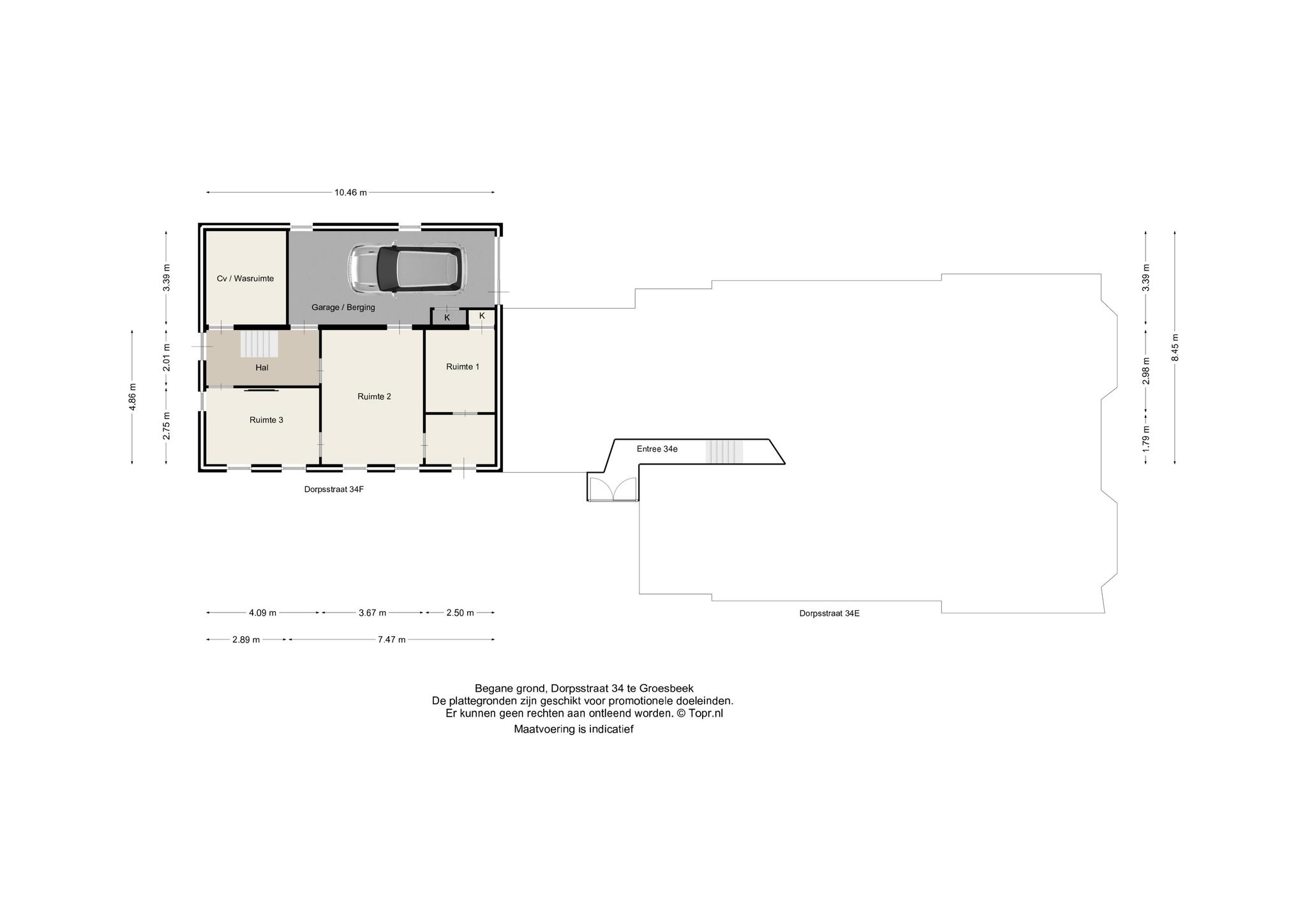 Entree appartementen via garage/berging met centrale meterkast, gang, berging /cv /wasruimte. De drie ruimten (in totaal ca. 41,68m²) zijn bereikbaar vanuit de zijtuin, de garage/berging en het trappenhuis.