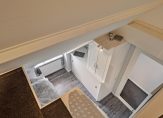 1e verdieping: Overloop / slaapkamer met laminaatvloer, entresol, dakkapel met draaikiep raam met rolluik en toegang tot de entresol en zolder / ouderslaapkamer met laminaatvloer, airconditioning en dakkapel met hor en rolluik / luxe badkamer (anno 2023) met vloerverwarming voorzien van inloopdouche met inbouwkraan, stort- en handdouche, ligbad met inbouwkraan, wastafelmeubel met inbouwkraan, 2e toilet met inbouwreservoir, elektrische radiator en draaikiep raam met een hor / slaapkamer met laminaatvloer en draaikiep raam met een rolluik.
