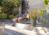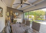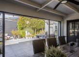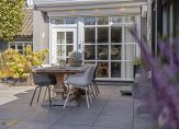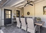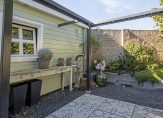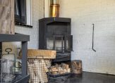 * Royale overkapping met houtkachel en hardglazen schuifpui;