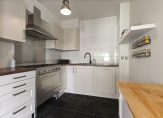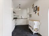 Je komt binnen in de hal met toilet, meterkast en trap naar boven. Aan het eind van de hal stap je de royale woonkamer binnen: lekker licht, sfeervol en met een haard als gezellige blikvanger. De halfopen keuken staat in verbinding met de woonkamer en is praktisch ingericht in een L-vorm. Daarnaast vind je op de begane grond een handige bijkeuken met plek voor de wasmachine en droger. Via de schuifpui in de woonkamer stap je zo de tuin in.