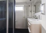 Op deze etage bevinden zich drie slaapkamers en een badkamer. De grootste slaapkamer ligt aan de achterkant en heeft toegang tot een heerlijk ruim balkon. De badkamer is functioneel en voorzien van douche, toilet en dubbele wastafel.