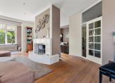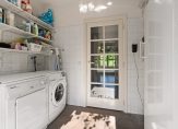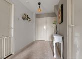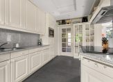 entree / ruime hal met toegang tot de woonkamer, gezellige landhuisstijl keuken en trapopgang naar boven. De woonkamer is licht en ruim, met ramen aan meerdere zijden en een doorloop naar de eetkamer. Vanuit de eetkamer is er zicht op de tuin en toegang tot een tussenhal, die leidt naar de keuken. De ruime keuken is voorzien van de nodige inbouwapparatuur. Grenzend aan de keuken vind je een bijkeuken met extra bergruimte en een deur naar buiten. De kelder is eveneens via de keuken te bereiken. Via de openslaande deuren loop je naar de zonnige zeer diepe achtertuin, die op het zuidwesten ligt. De tuin is voorzien van een dubbele, houten garage met elektrische roldeuren.