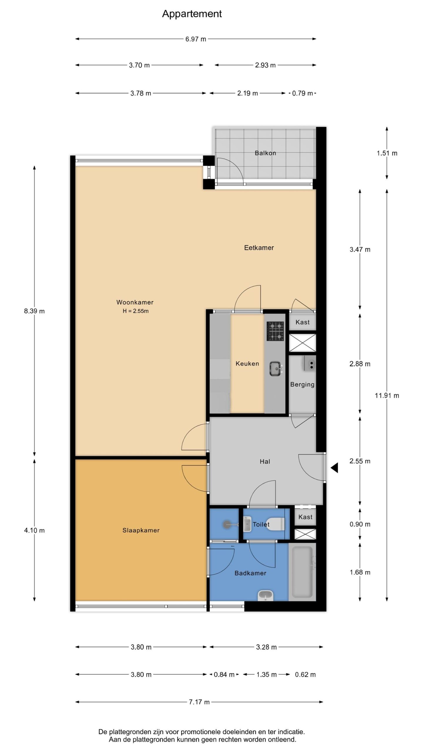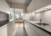 Met de lift kunt u naar de eerste verdieping waar het appartement te vinden is. Een ruime entree met garderobekast en een inloopkast met boiler die kan worden gebruikt als berging. Vanuit de hal kunt u naar de woonkamer, slaapkamer en naar het toilet. De L-vormige woonkamer met balkon op het westen heeft toegang tot de dichte keuken met inbouwapparatuur. De badkamer is bereikbaar via de slaapkamer maar ook via het toilet. Deze ruimte is voorzien van douche, ligbad, wastafel en wasmachineaansluiting.