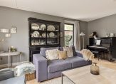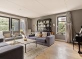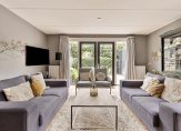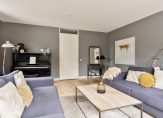 * Uitgebouwde woonkamer met eiken visgraat parketvloer en openslaande deuren naar de tuin;