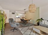 * De woonkamer is geheel voorzien van plavuizenvloer met vloerverwarming;