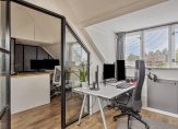 2e verdieping: Voorzolder met werkhoek, opstelling voor wasmachine en droger en vaste kast / slaapkamer annex werkkamer met keukenblok, airconditioning, dakkapel, dakvenster en stookruimte (Intergas CV anno 2022).