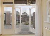 * Een prettige lichte woonkamer met openslaande deuren en zijraam;