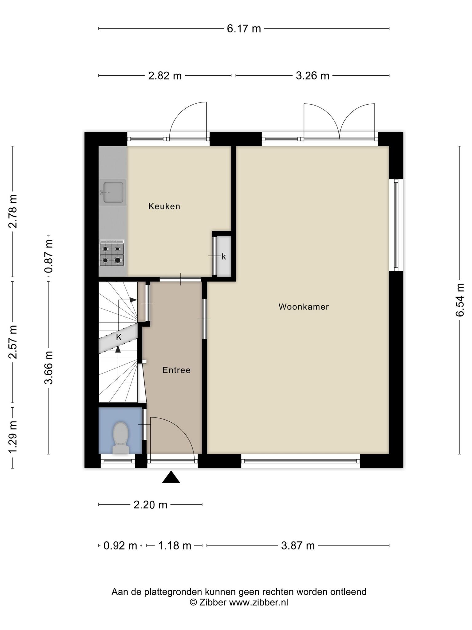 Indeling: Entree / hal met plavuizenvloer / toilet / trapkast met meterkast (6 groepen + 2x aardlekschakelaar) / doorzon woonkamer met openslaande deuren naar de achtertuin / dichte keuken met provisiekast voorzien van gasfornuis met oven, afzuigkap en toegang tot de achtertuin / diepe achtertuin, maar liefst 35 meter diep, met vrijstaande stenen berging met wasmachine aansluiting, aangebouwde houten berging en hobbykas.