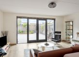 * Woonkamer v.v. keramisch parket met vloerverwarming;