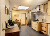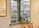 Indeling: Entree / hal met garderobe / toilet met fontein / meterkast (8 groepen + 2x aardekschakelaar + glasvezel) / royale woonkamer voorzien van plavuizenvloer, provisiekast en convectorput / dichte woonkeuken met plavuizenvloer en lichtkoepel voorzien van granieten aanrechtblad, gaskookplaat, afzuigschouw en dubbele spoelbak / aangebouwde garage met verwarming en vliering / fraai aangelegde achtertuin op het zuiden met vrijstaande stenen berging en achterom.
