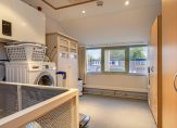 2e verdieping: Voorzolder met opstelling voor wasmachine en droger en stookruimte (Nefit Combi Ecomoline) / ruime slaapkamer met dakvenster en wastafelmeubel.