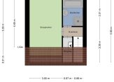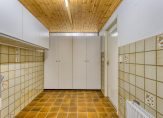 Indeling: Entree / ruime hal met garderobe ruimte en meterkast (5 groepen + aardlekschakelaar) / bijkeuken met boiler, vaste wastafel, verwarming en aansluitingen voor wasmachine en droger / grote garage met smeerput en elektrische overheaddeur, deze garage is ook vanaf de achterzijde van de woning bereikbaar.