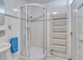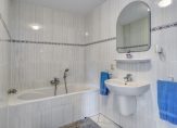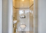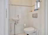* Badkamer met ligbad, douchecabine en wastafel en separaat toilet op de overloop;