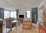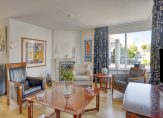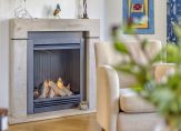 * Woonkamer met gashaard en openslaande deuren naar de achtertuin;