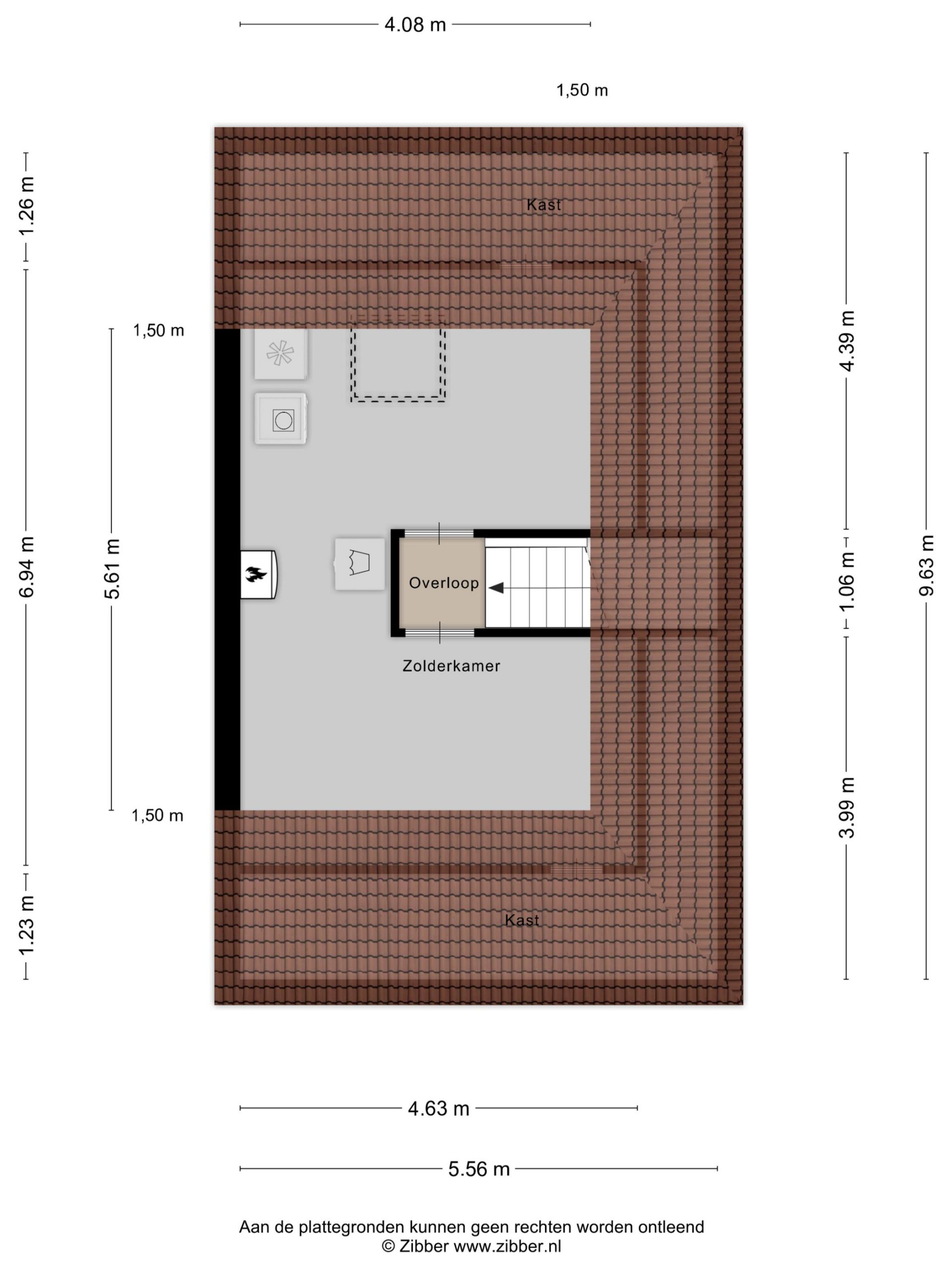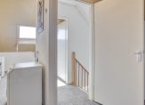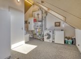2e verdieping: Overloop / ruime zolderkamer met dakvenster, stookruimte (Nefit Combi Ketel), mechanische ventilatie en opstelling voor wasmachine en droger.