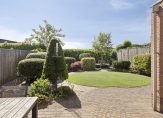 Indeling: Entree / hal / toilet met inbouwreservoir en fontein / meterkast (6 groepen, dubbel 220, 2 aardlekschakelaars) / woonkamer met parketvloer (tapies gelegd), sfeervolle gashaard en openslaande deuren naar de zonnige achtertuin / hoogglans witte keuken met granieten aanrechtblad voorzien van koelkast, combioven, Miele vaatwasser, carrouselkast, keramische kookplaat, afzuigkap en toegang tot de tuin / fraai aangelegde achtertuin op het zuidoosten met veel privacy / aangebouwde stenen garage met elektrische overheaddeur, elektra en wateraansluiting.