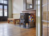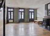 * Ruime sfeervolle woonkamer met eiken parketvloer, houtkachel en airconditioning;