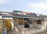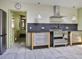 * Woonkeuken met lichtkoepel en aansluitende bijkeuken met openslaande deuren naar dakterras;