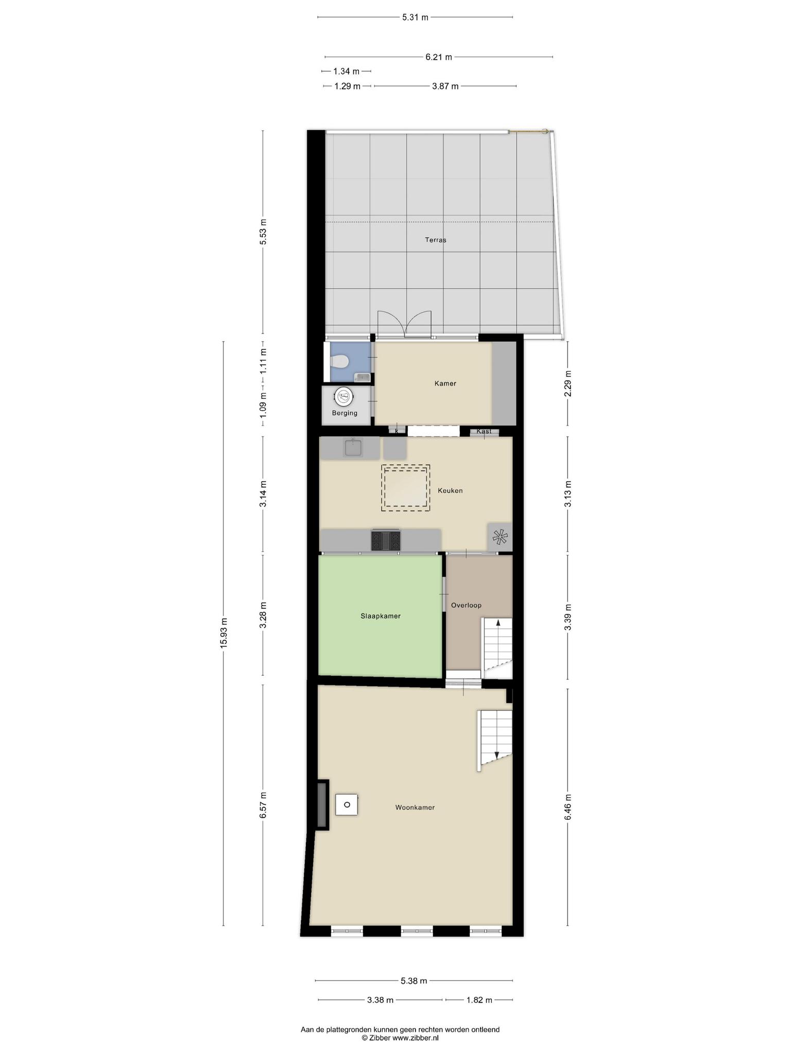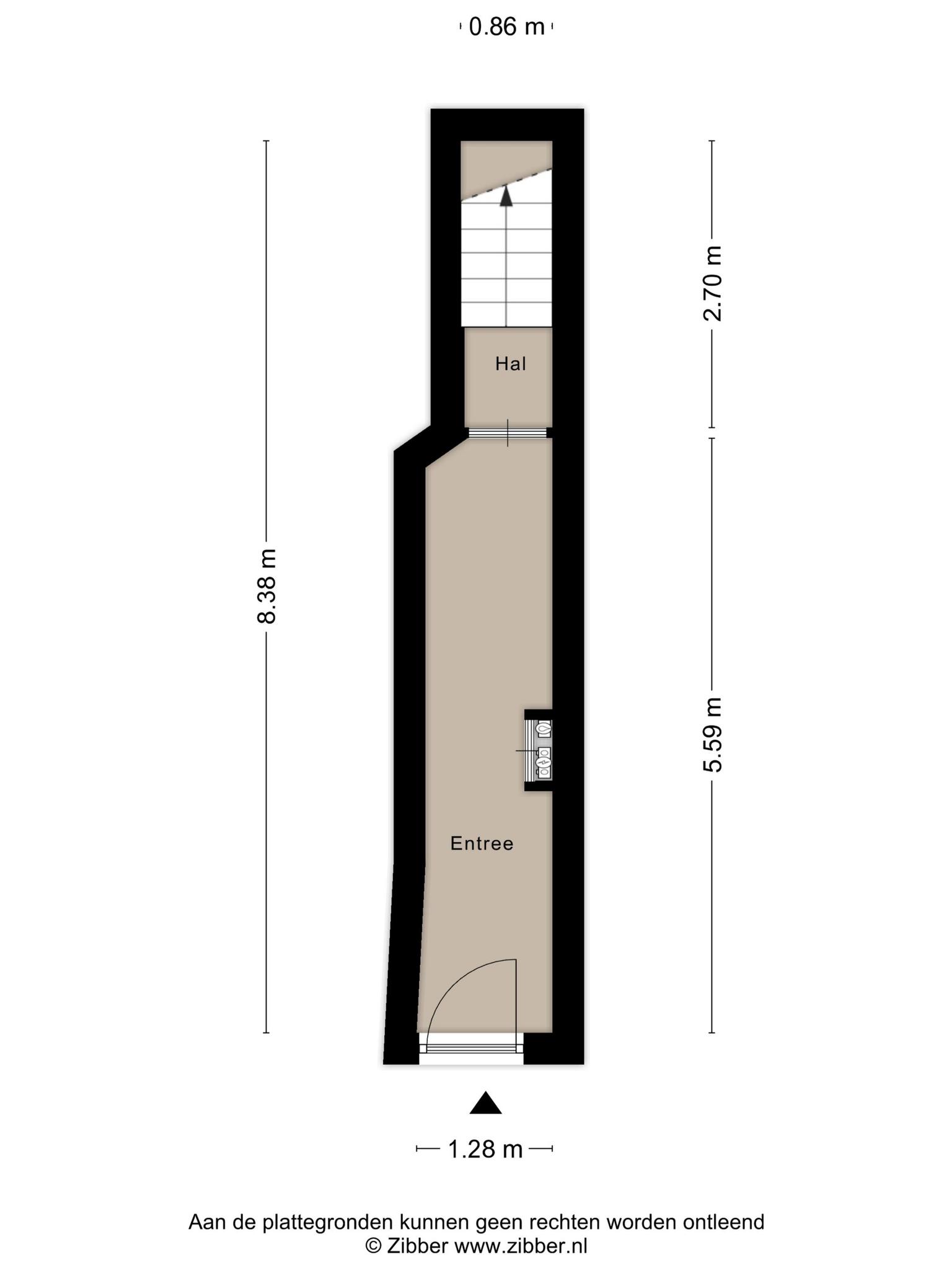 Indeling: Eigen entree / hal met meterkast (6 groepen + 2x aardlekschakelaar + dubbele groep) en trapopgang naar de eerste verdieping.