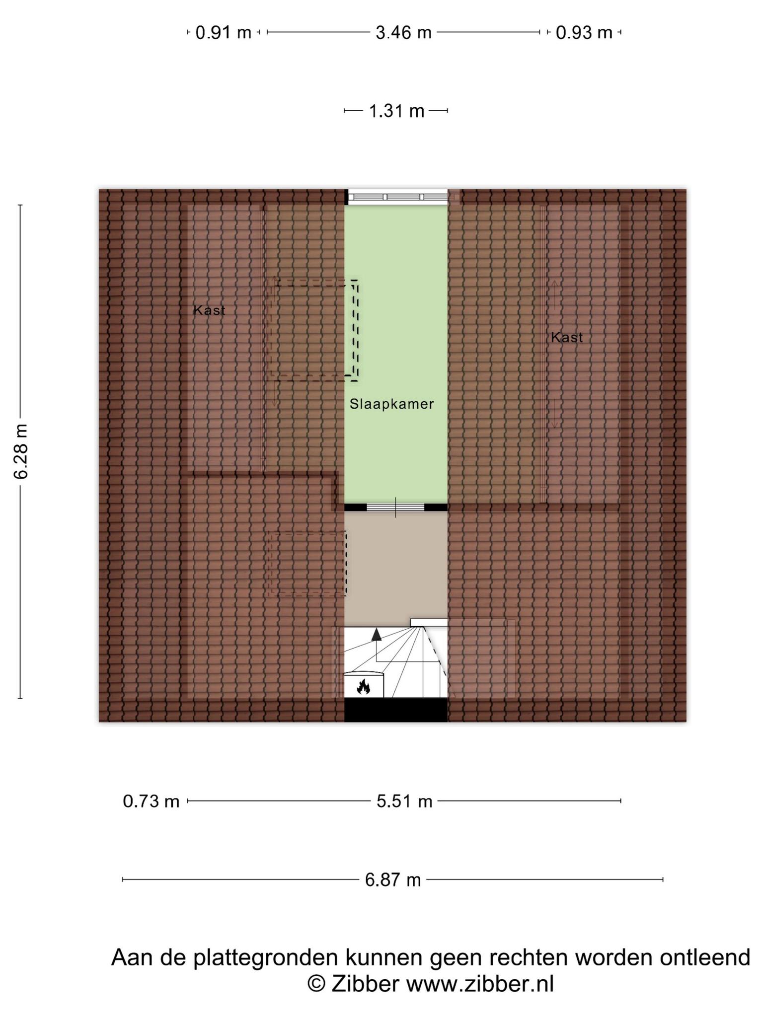 Zolder: Voorzolder met stookruimte (huurketel) en een raam / zolderkamer.