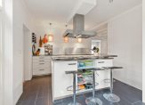 Entree / hal met klassiek boeren deur en garderobe. Riante woonkamer met gashaard en eiken houten vloer ca. 40 m2. Deels open keuken (2016 gerenoveerd) met kookeiland en openslaande deuren naar terras. Bijkeuken met witgoed aansluiting en met luik naar een kleine zolderberging. Tweede hal met meterkast en toilet. Kantoor aan de voorkant van het huis, waarbij het raam is voorzien van houten luiken.