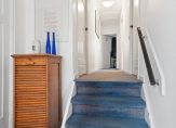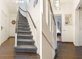 Eerste verdieping: 5 slaapkamers waarvan 2 met dakkapel en 1 met vide en toegang tot een ruime speel- of slaapzolder. Badkamer met hoekbad, 2 wastafels, inloopdouche en toilet. Overloop met trap naar bergzolder. Berging waar ook de cv-ketel (2021) zich bevindt.