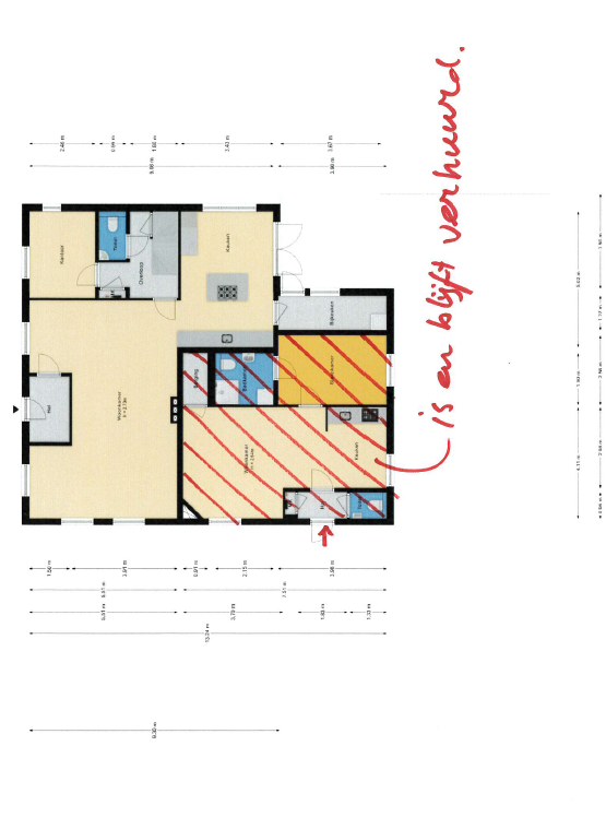 Een deel van het voormalige café is omgebouwd tot een zelfstandig appartement met eigen ingang op de Veldstraat, eigen elektra en eigen warm water voorziening. Het appartement is momenteel verhuurd en zorgt voor een stabiel inkomen.( € 525,- per maand inclusief energie) Financiering met een verhuurd deel is mogelijk; informeer bij uw bank naar de voorwaarden. Bij beëindiging van de huur zal de waarde van uw investering aanzienlijk toenemen.
