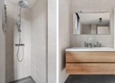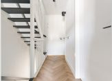 Eerste verdieping: Drie ruime slaapkamers, allen met dezelfde fraaie visgraatvloer. De luxe badkamer beschikt over een dubbele wastafel, inloopdouche, toilet en vloerverwarming.