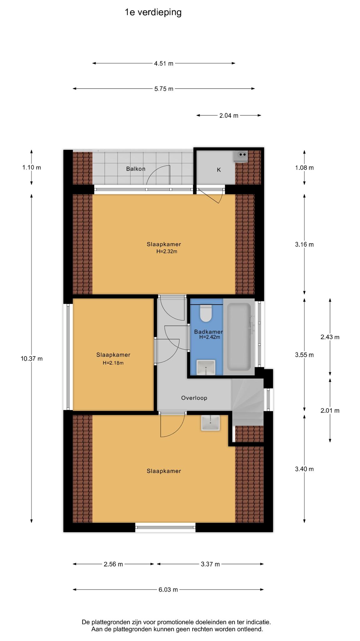 Eerste verdieping: drie geïsoleerde slaapkamers / badkamer