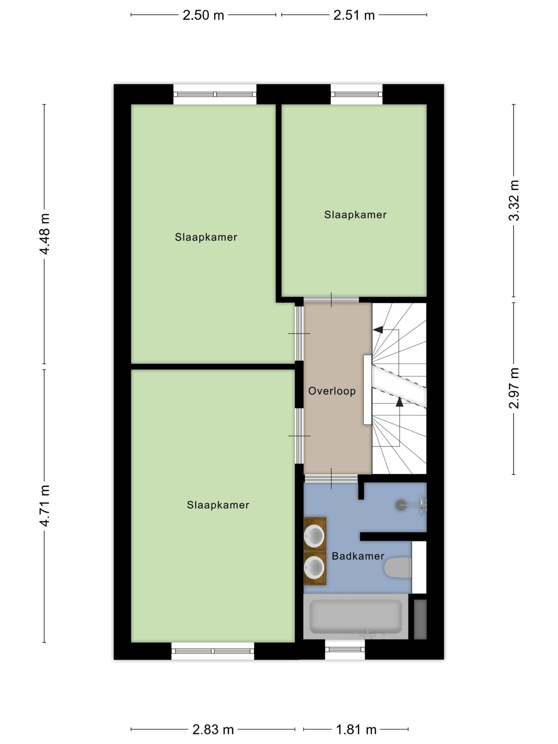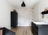 2e verdieping: Voorzolder met airconditioning in trapopgang (5 kW), mechanische ventilatie, aansluitingen voor wasmachine en droger en Velux dakvenster / royale zolderkamer (2 kamers mogelijk) met kunststof dakkapel met rolluik en een op maat gemaakte inbouwkast.