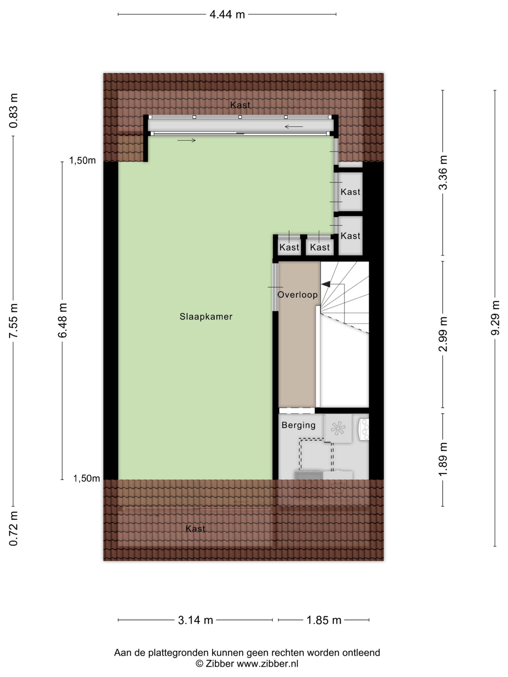 * Royale zolderkamer met dakkapel, 2 kamers mogelijk;