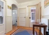 Via de trap kom je bij de entree op de eerste verdieping: ruime hal met handige inbouwkasten en een apart toilet. De lichte doorzonwoonkamer met parketvloer en gezellige gashaard loopt door naar de eetkamer met openslaande deuren naar het balkon. Het balkon aan de achterkant kijkt uit over groene binnentuinen. De keuken, die ook toegang geeft tot het balkon, is voorzien van eenvoudige apparatuur. Vervolgens loop je via de overloop verder naar de badkamer. De badkamer beschikt over een douche en een wastafel. Verder zijn er twee slaapkamers met inbouwkasten gerealiseerd en via een vaste trap kom je op de zolderkamer(is derde slaapkamer) met houten vloer en cv-ketel (2013).