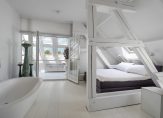 Binnen is elk detail doordacht. Hoogwaardige materialen, slimme indeling, en een sfeer die tegelijk stijlvol en warm is. Grote ramen zorgen voor een constante verbinding tussen binnen en buiten. En ’s avonds? Dan wordt dit penthouse pas écht magisch