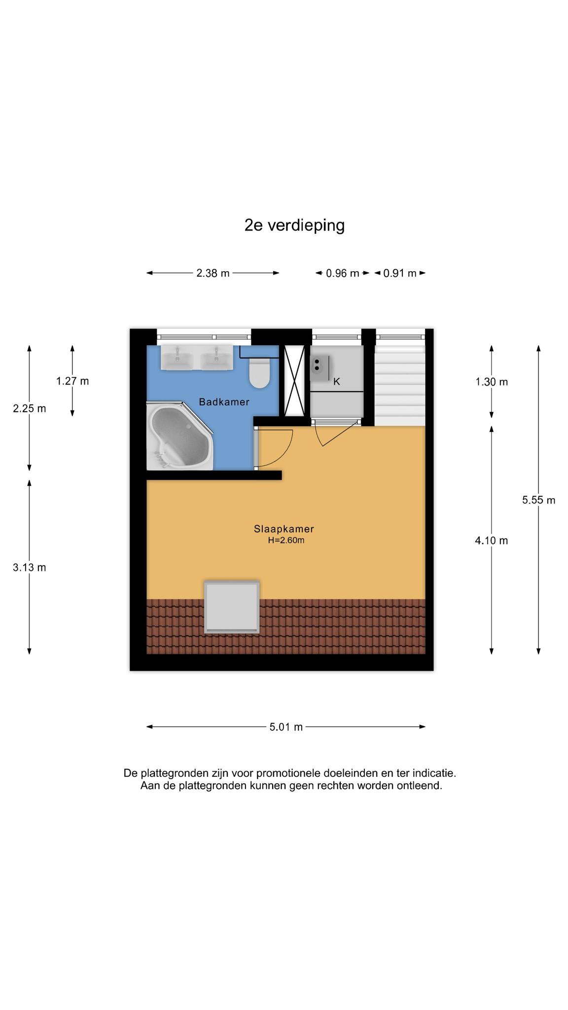 Op de derde verdieping vinden we de master bedroom en de badkamer. De badkamer is voorzien van een groot bad en een vaste wastafel met toilet. Op de derde verdieping hangt ook de cv-ketel en is er nog een ruimte voor opslag. Door de dakkapel aan de achterzijde is er vanuit de zuidkant veel ligt op deze verdieping.