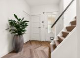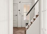 Via de centrale hal op de begane grond heb je toegang tot de (fietsen)berging. Eén trap brengt je naar de voordeur van het appartement. Binnenkomst in een ruime hal met garderobe, bergkast, meterkast en modern toilet.