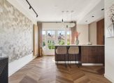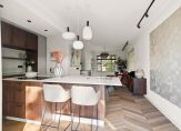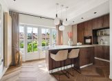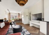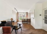 De royale L-vormige woonkamer is het resultaat van een slimme verbouwing en biedt veel leefruimte, een gezellige gashaard en een strakke PVC-vloer. De op maat gemaakte open leef-keuken met kookeiland is een eyecatcher en voorzien van alle denkbare inbouwapparatuur. Via openslaande deuren stap je zo het zonnige balkon op het westen op, met een sfeervol uitzicht over de binnentuinen. Vanaf halverwege de middag tot aan zonsondergang kun je hier heerlijk genieten van het zonnetje.