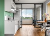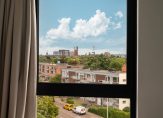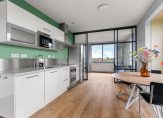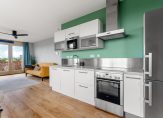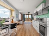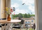 De keuken is volledig uitgerust met een vaatwasser, gaskookplaat, oven, magnetron, afzuigkap en een losse koel-vriescombinatie. Vanaf de eettafel heb je een prachtig uitzicht richting het stadscentrum.