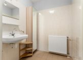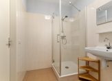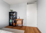 Via de entree kom je op de overloop, waar zich een bergkast met wasmachineaansluiting bevindt. Vanuit hier heb je toegang tot het toilet, de badkamer en de technische ruimte. Loop je verder, dan kom je in de ruime slaapkamer van ongeveer 12 m² en de lichte doorzonwoonkamer met open keuken.