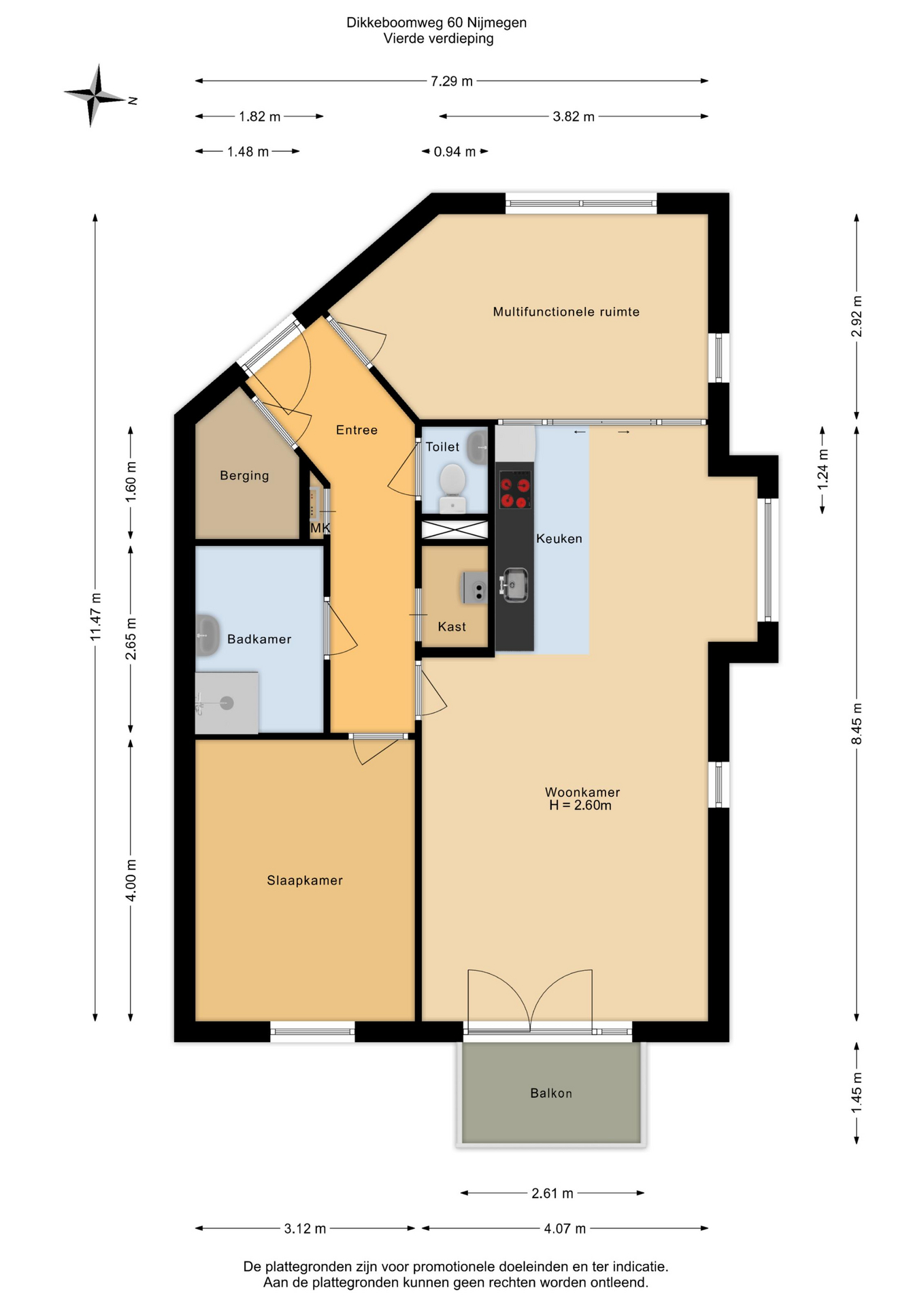 Ruim en licht appartement, gelegen op de vierde verdieping, met een zonnig balkon op het oosten met fraai uitzicht over Nijmegen. Met een kleine aanpassing is het mogelijk om een tweede slaapkamer te realiseren.