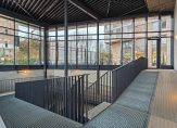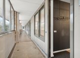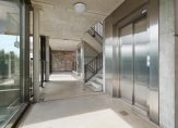 Begane grond: De centrale entree met brievenbussen, het trappenhuis en twee liften.