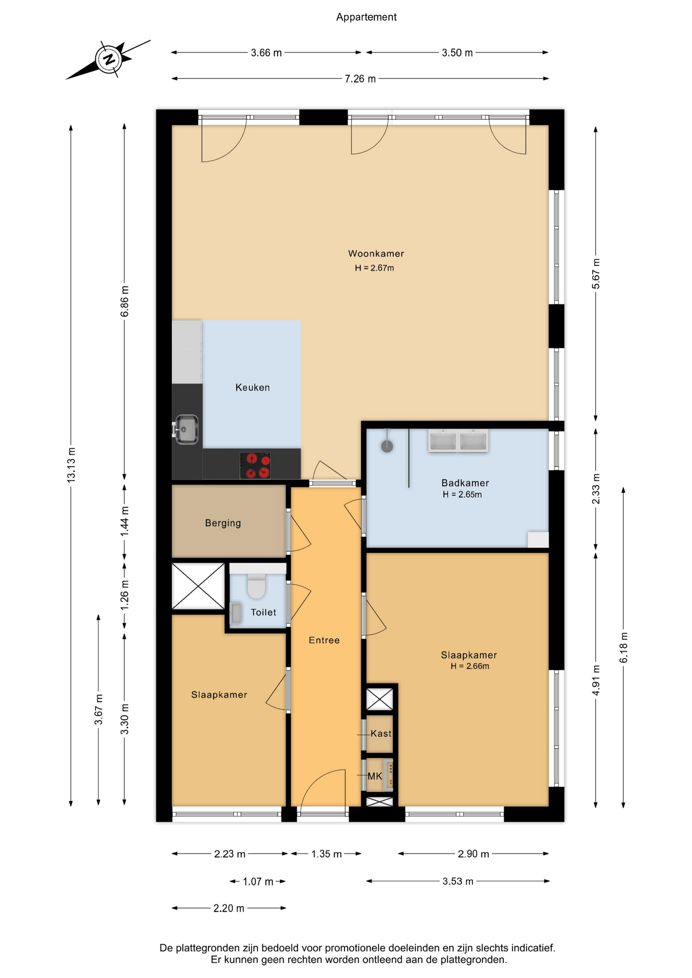 Vanwege de hoekligging heb je geen last van voorbijlopende bewoners. Via de hal zijn alle vertrekken bereikbaar. De zonnige living van (ca. 40m2!) met L-vormige keuken is voorzien van een inductieplaat, vaatwasser, inbouw koel-vriescombinatie, combi-magnetron en veel kastruimte! Aangrenzend aan de woonkamer/keuken het dakterras. In totaal zijn er twee slaapkamers, waaronder de masterbedroom met mooi raampartijen en een extra kamer als tweede slaapkamer, logeerkamer of werkkamer. In de handige en functionele berging bevindt zich tevens de witgoedaansluitingen.