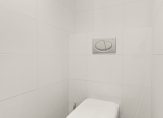 De moderne badkamer is uitgerust met twee vaste wastafels, een tweede toilet en een inloopdouche.