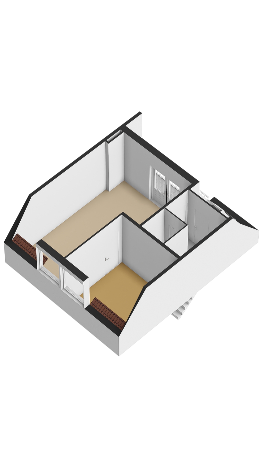 Op de begane grond zit de voordeur van de bovenwoning. Deze is via de gemeenschappelijke voortuin te bereiken. Via de trap naar de eerste verdieping kom je bij de eigen voordeur met trapopgang naar de hal. In de woonkamer met hoge balkenplafond, bevindt zich tevens de keuken en openslaande deuren naar het zonnige balkon, gelegen op het westen. De slaapkamer ligt aan de voorzijde en is bereikbaar via de woonkamer, welke allebei voorzien zijn van onderhoudsvrije draai/kiep ramen. Vanuit de hal is er toegang tot een ruimte met toilet, wastafel en wasmachine-aansluiting. In deze ruimte bevindt zich ook de cv-ketel. De doucheruimte bevindt zich tegenover de toiletruimte in de hal.