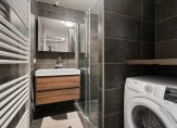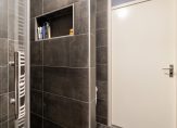 Via de gang is de moderne badkamer bereikbaar, welke voorzien is van een inloopdouche, wastafelmeubel en witgoed aansluiting. Vervolgens zijn er wee slaapkamers gelegen.