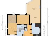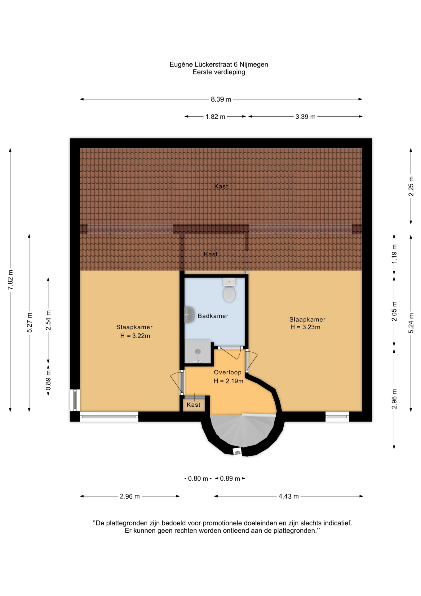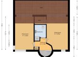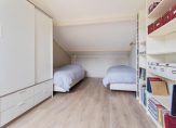Eerste verdieping: vanuit de overloop is een tweetal slaapkamers (ca. 16 en 14 m2) te bereiken. De badkamer, eveneens vanuit de overloop bereikbaar is voorzien van een doucheruimte, vaste wastafel en een derde toilet. De slaapkamers zijn voorzien van bergruimten achter de knieschotten en vaste kasten / achter de badkamer is een berging met c.v.-ketel / luik naar klein bergzoldertje.
