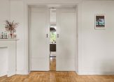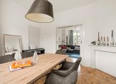 Verder ligt er in de gehele woning (m.u.v. de natte ruimtes) de originele houten vloer en in de woon- en eetkamer ligt een lamelparketvloer.