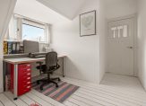 De kleinste slaapkamer aan de achterzijde heeft een dakkapel, deze kamer is ideaal te gebruiken als thuiswerkplek. De grote slaapkamer ernaast heeft ook een dakkapel en een inbouwkast. In het plafond zit een luik die toegang geeft tot de bergzolder met verlichting, opslagruimte én een vaste trap naar het platte dak. De hoogte van de bergzolder is 1.32 meter.