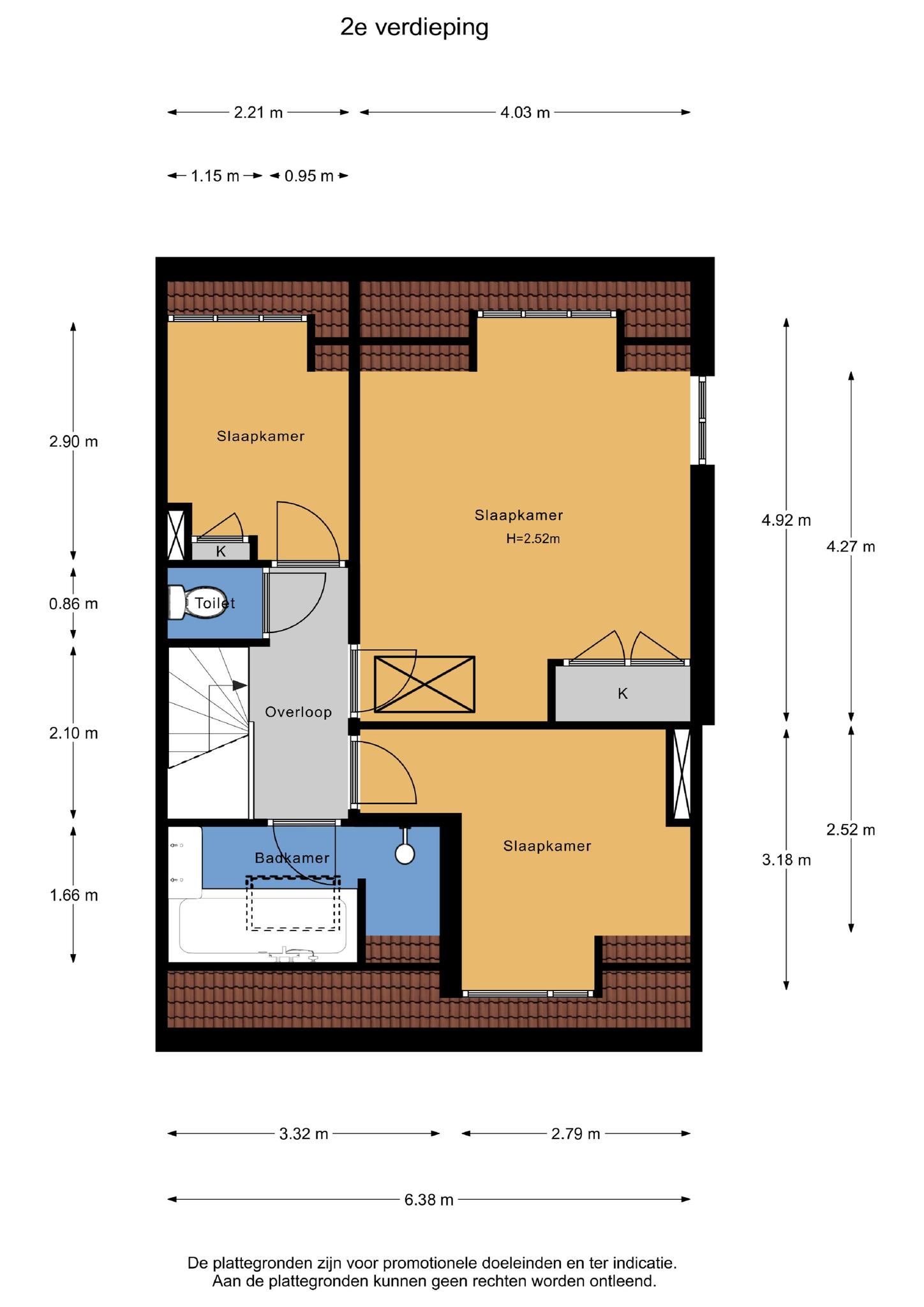 De derde slaapkamer waar ook een dakkapel en ingebouwde kast aanwezig zijn, ligt aan de voorzijde van de woning.