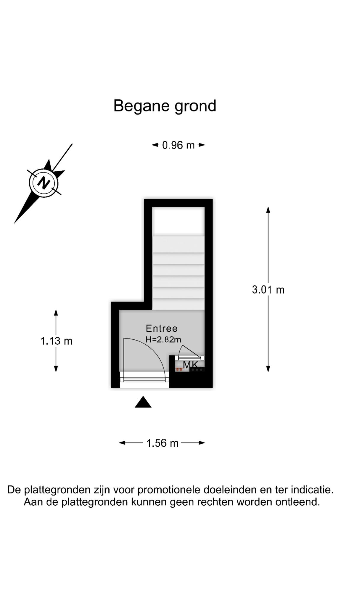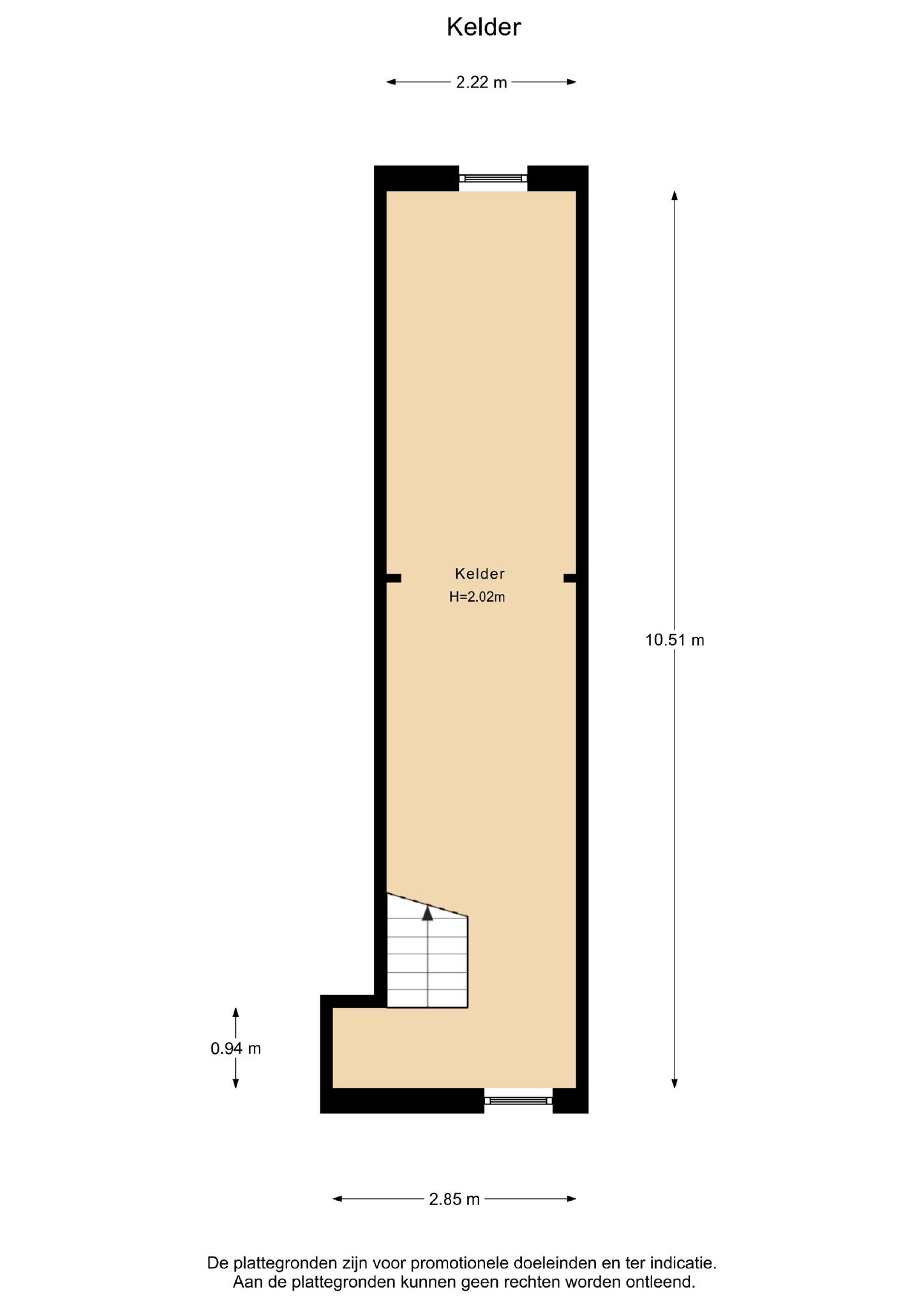 Indeling: entree op de begane grond en een trap naar de grote kelder (stahoogte).